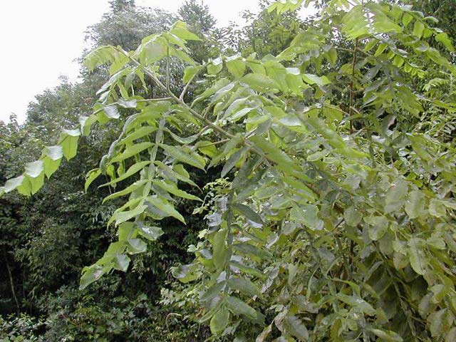 鹽膚木 是漆樹科,鹽膚木屬落葉小喬木或灌木,高可達10米;小枝棕褐色,葉片多形,卵形或橢圓狀卵形或長圓形,先端急尖,基部圓形,頂生小葉基部楔形,葉面暗綠色,葉背粉綠色,小葉無柄。圓錐花序寬大,多分枝,雌花序較短,密被銹色柔毛;苞片披針形,花白色。